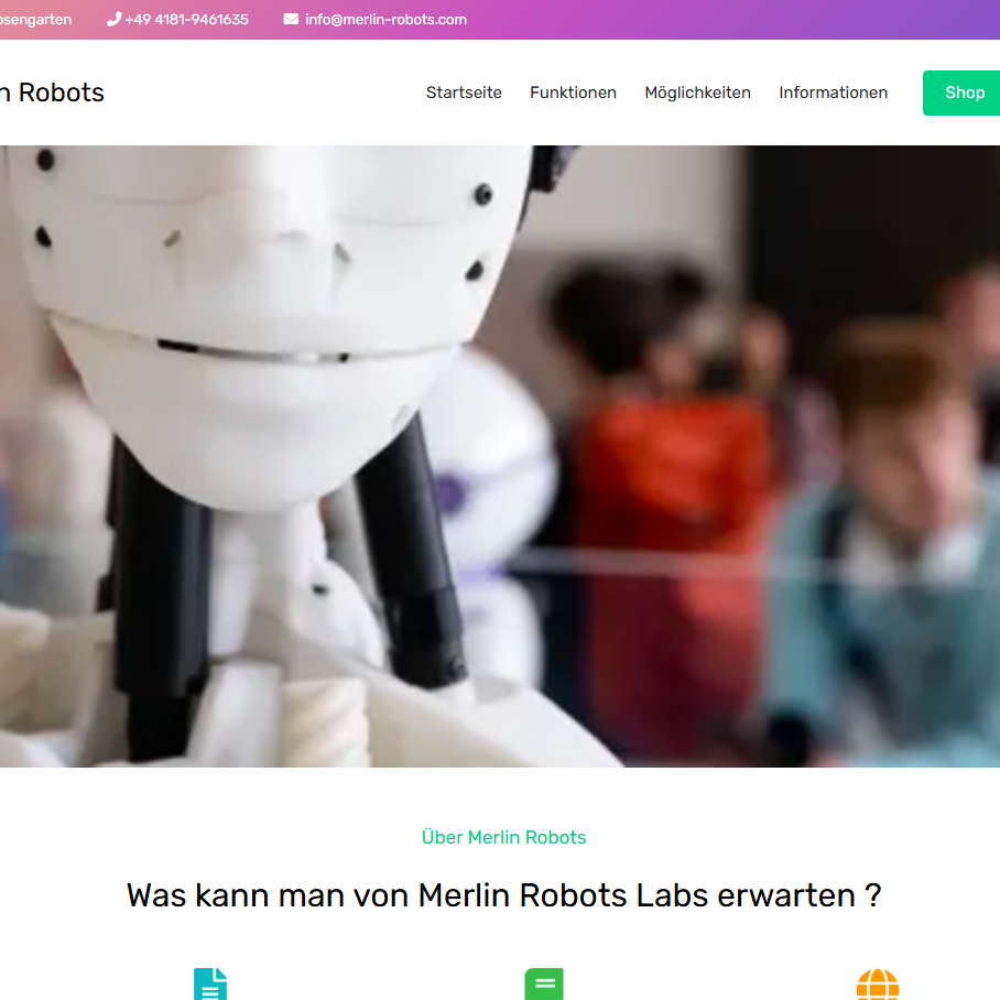 Merlin Robots vereint Mechanik, KI und Design zu einem interaktiven Begleiter – perfekt für Kundenbetreuung, Präsentationen, Forschung und Entertainment.
